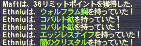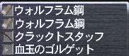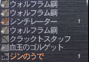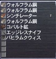 装備0個、コバルト1個 ウォルフラム数個 シンチ1個