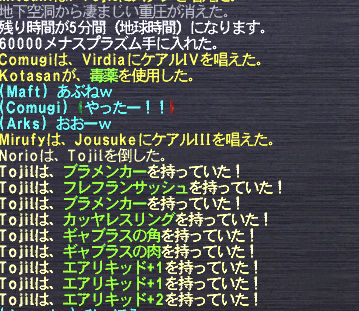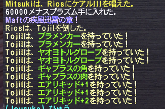 ボス戦利品は身内で全回収で集めているので、こっち側でロットバトルして終了